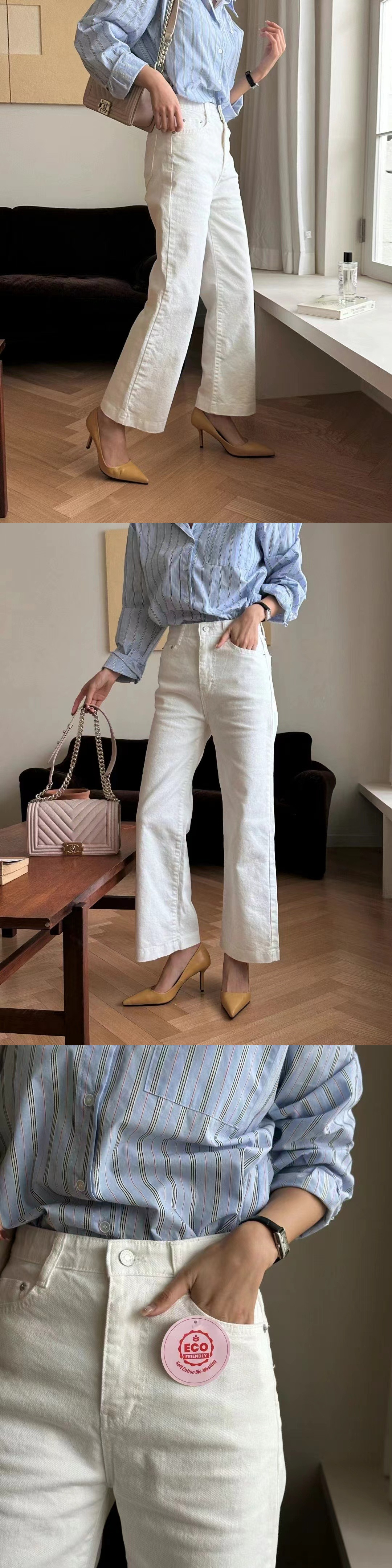 環保洗滌,顏色自然的Straight Leg Jeans,