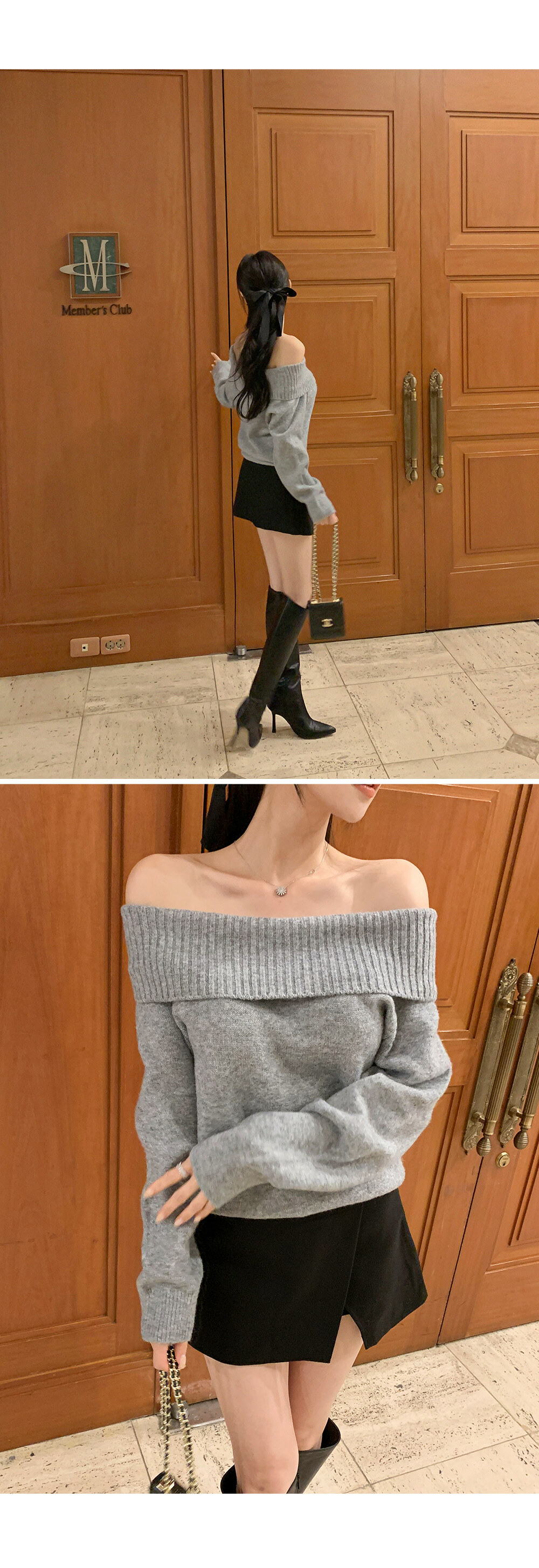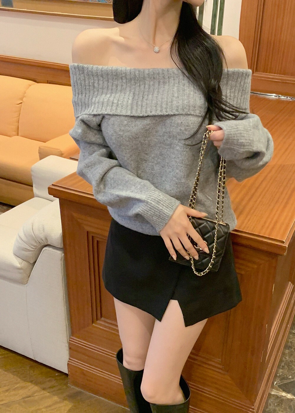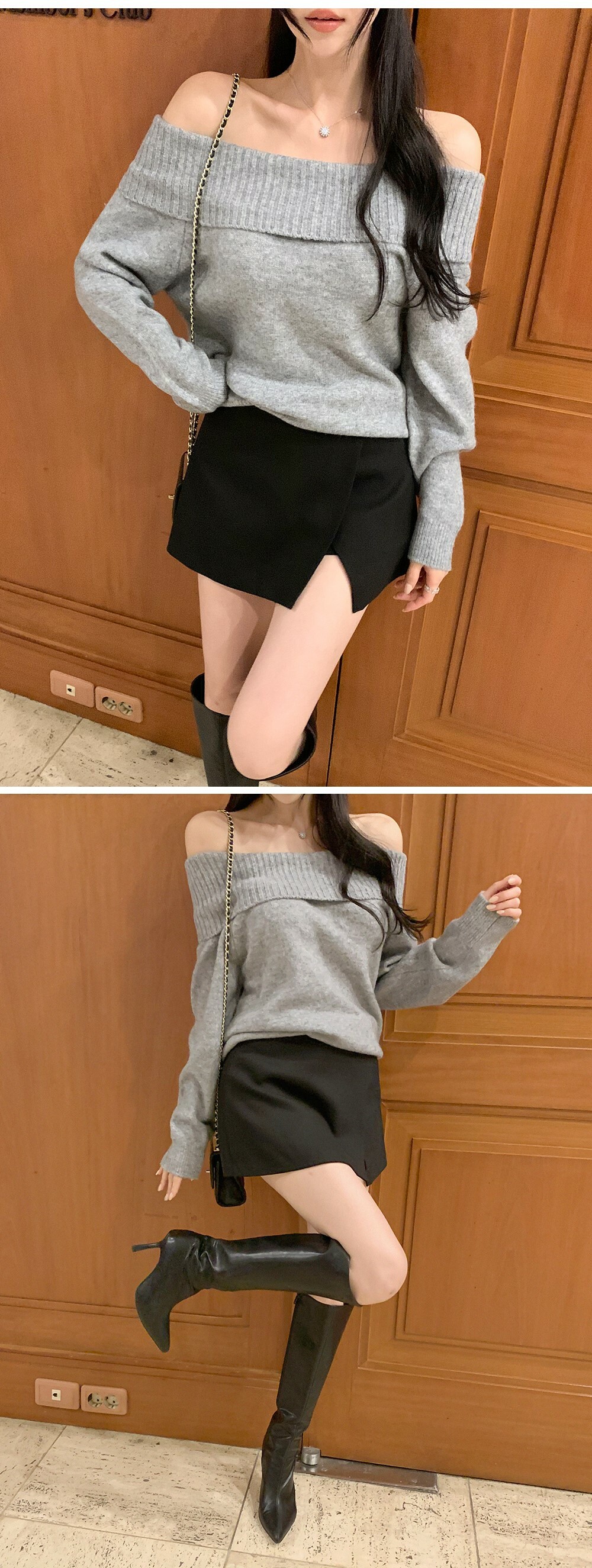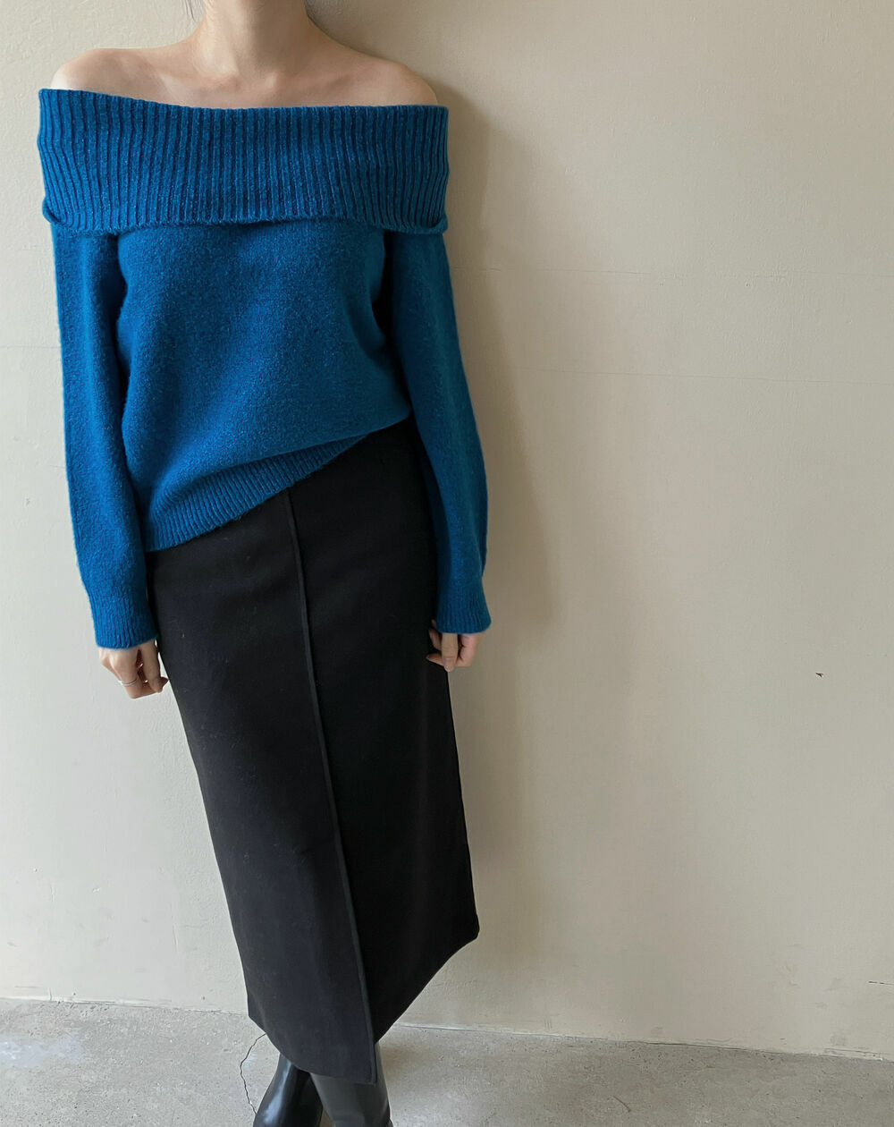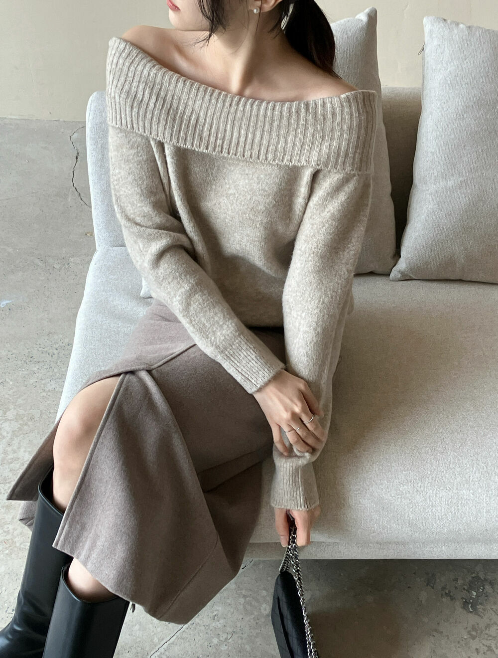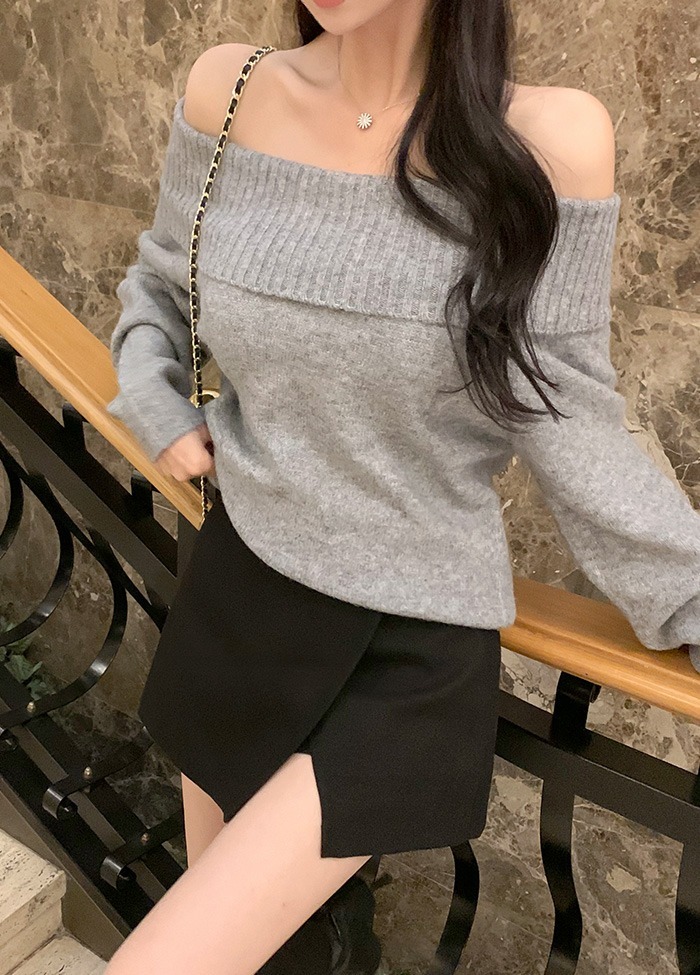 寬鬆版型針織一字肩上衣,