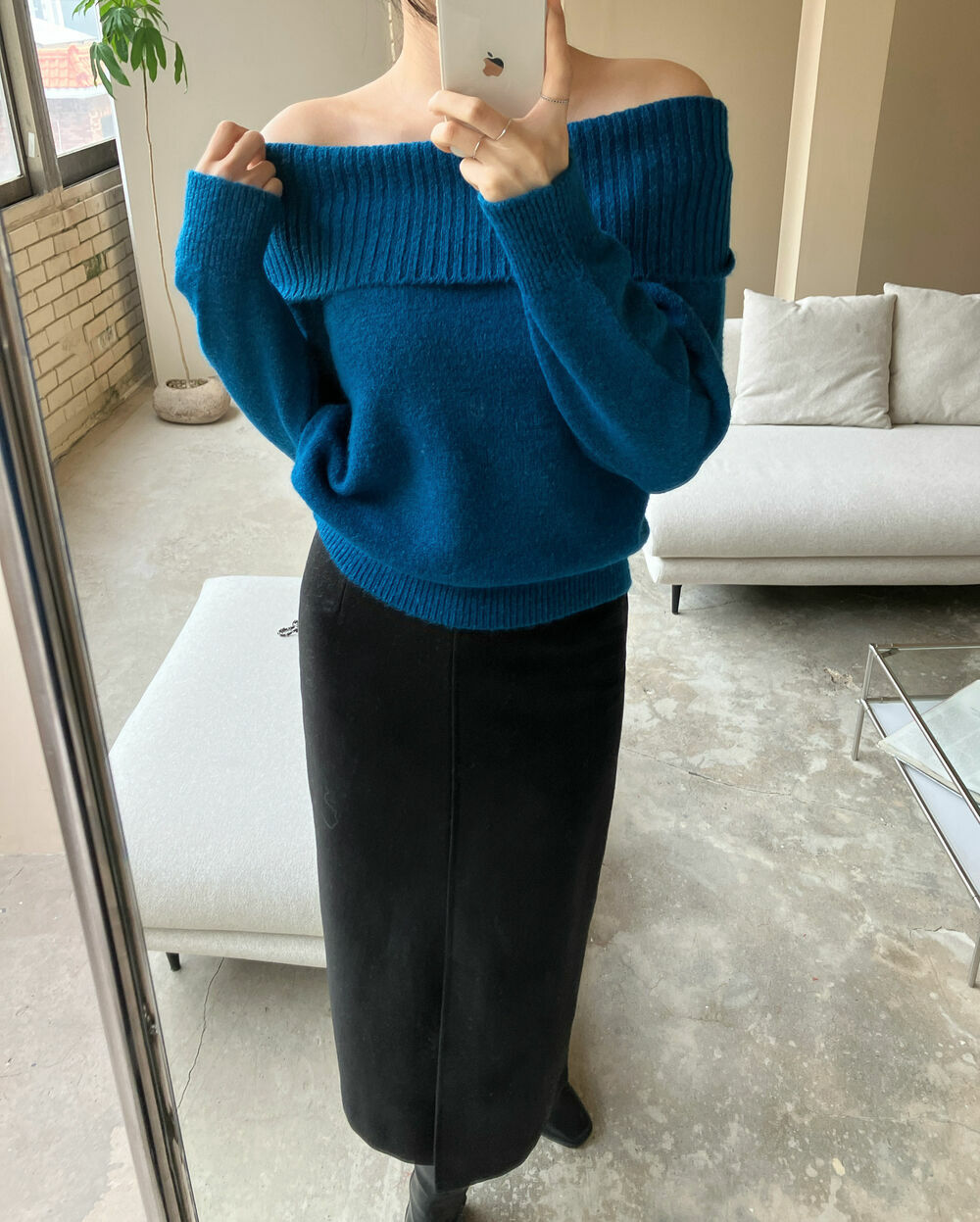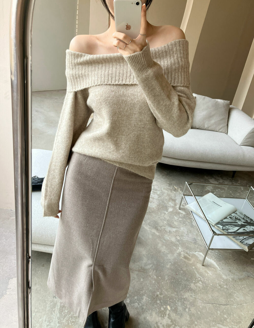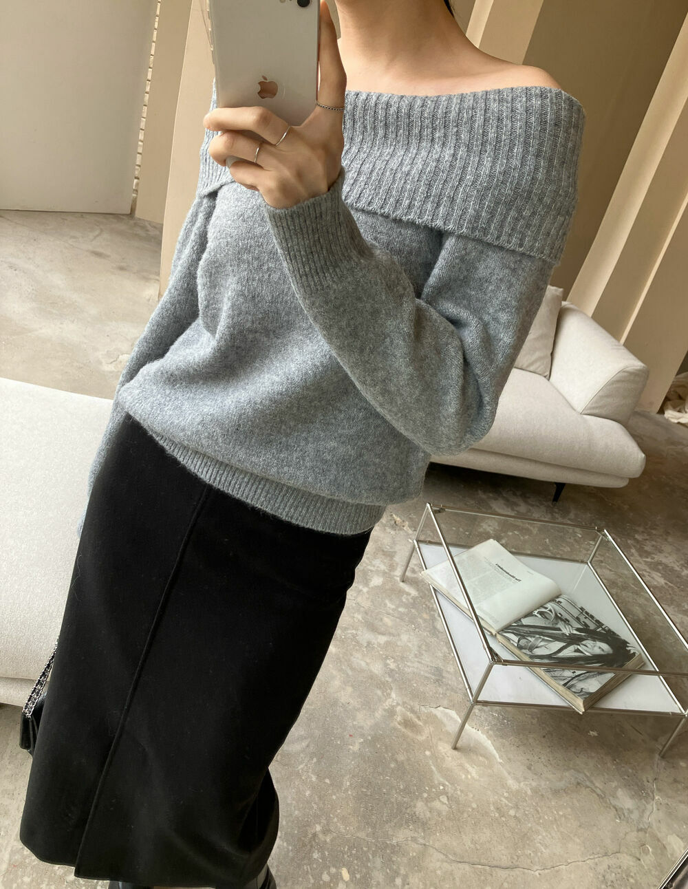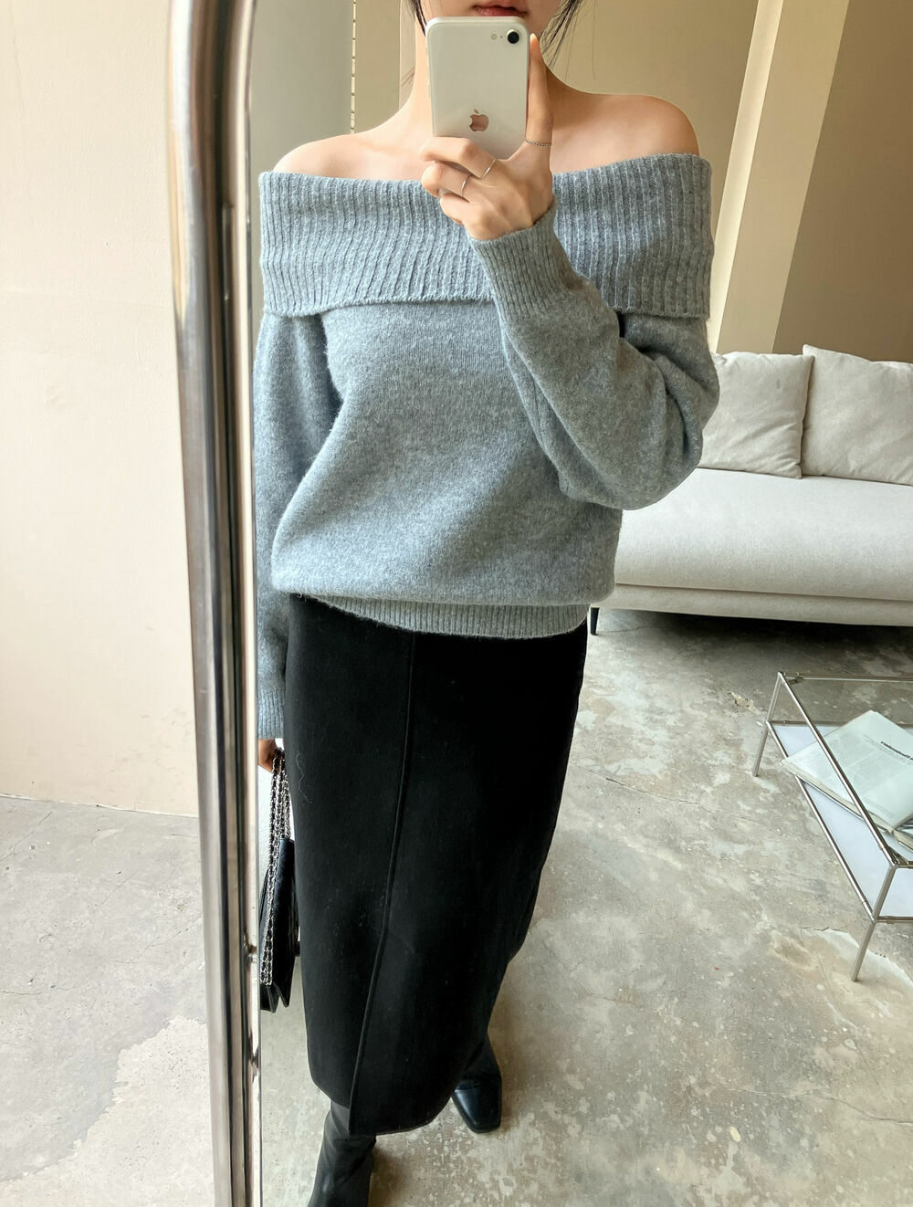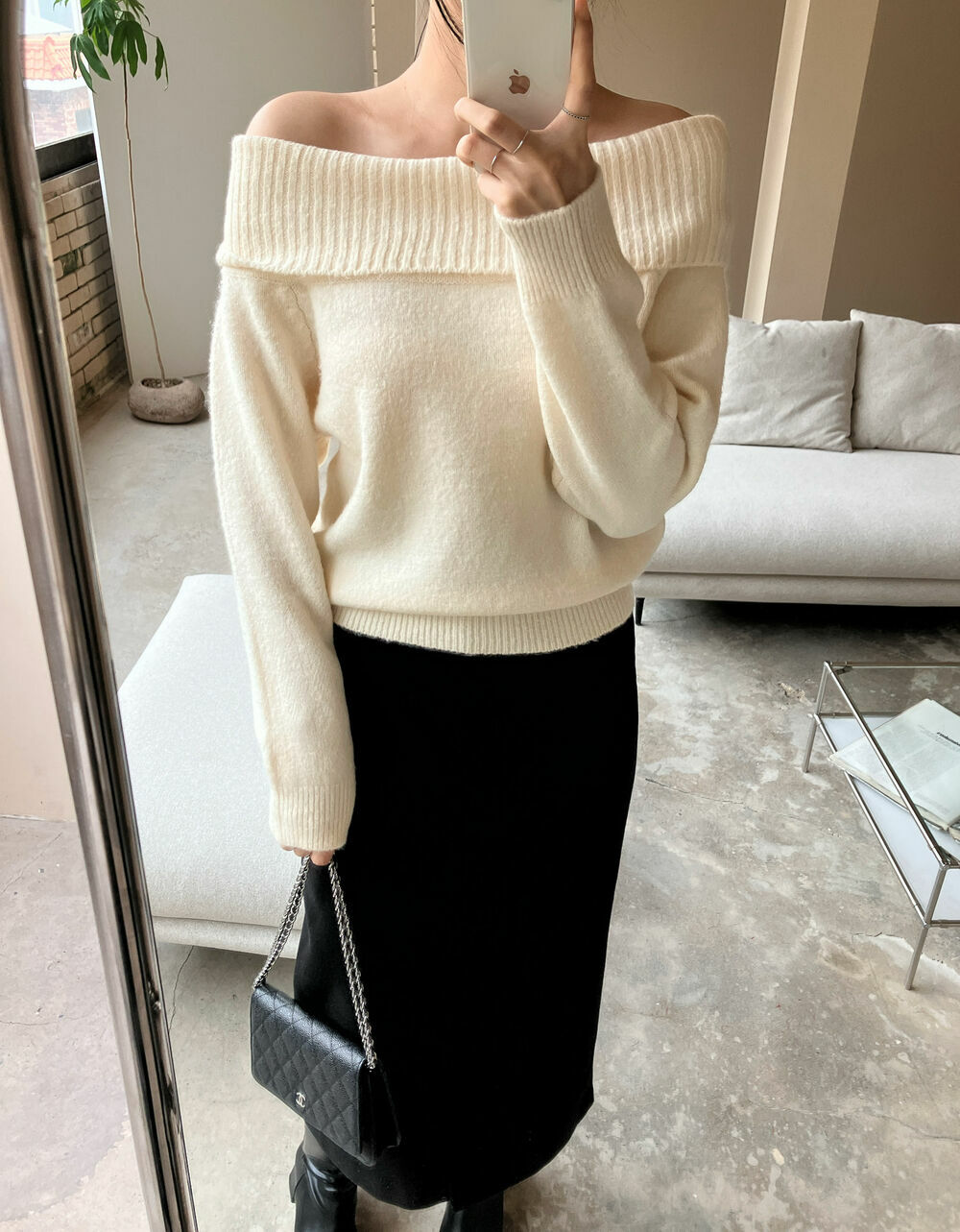 寬鬆版型針織一字肩上衣,