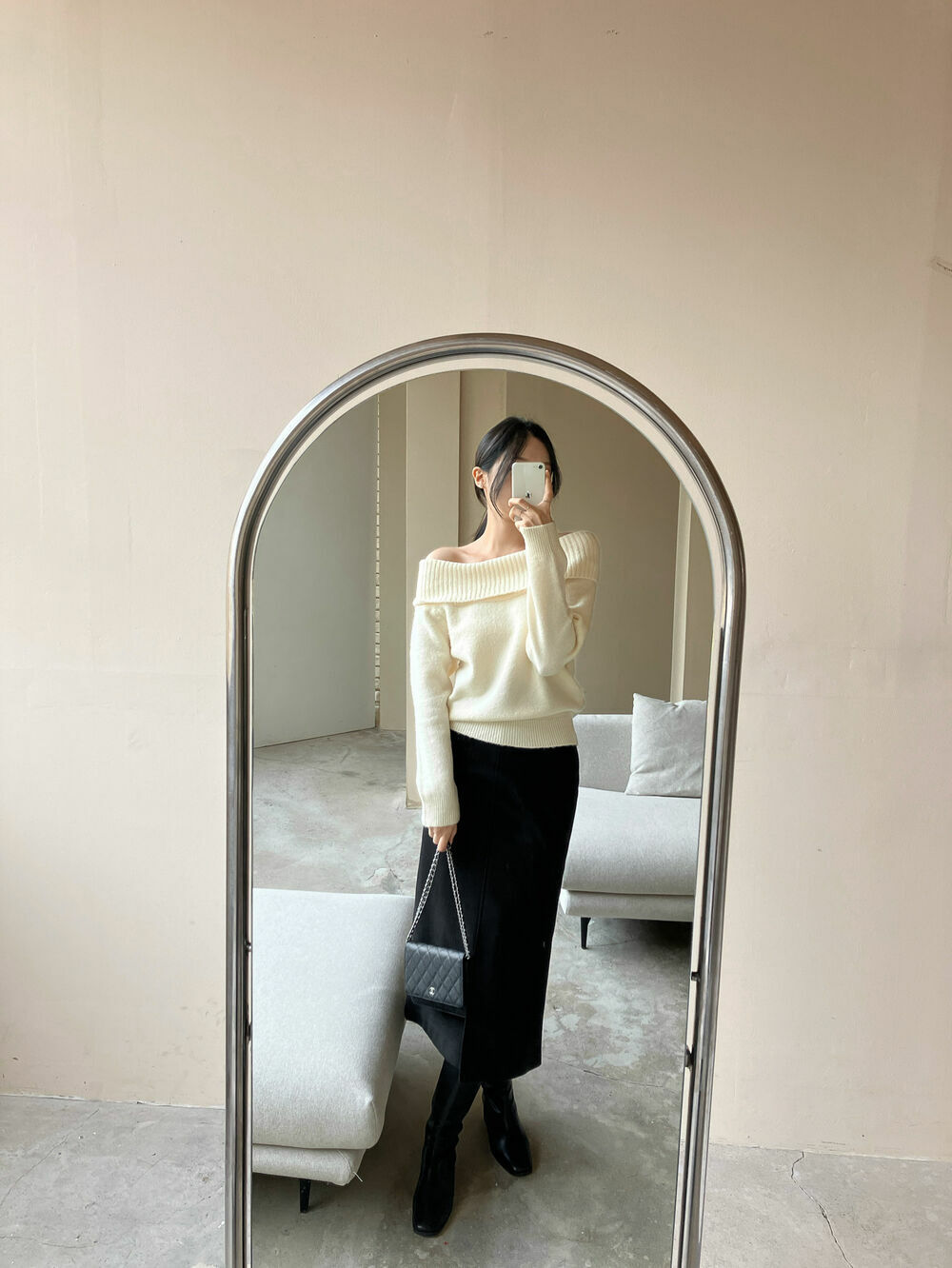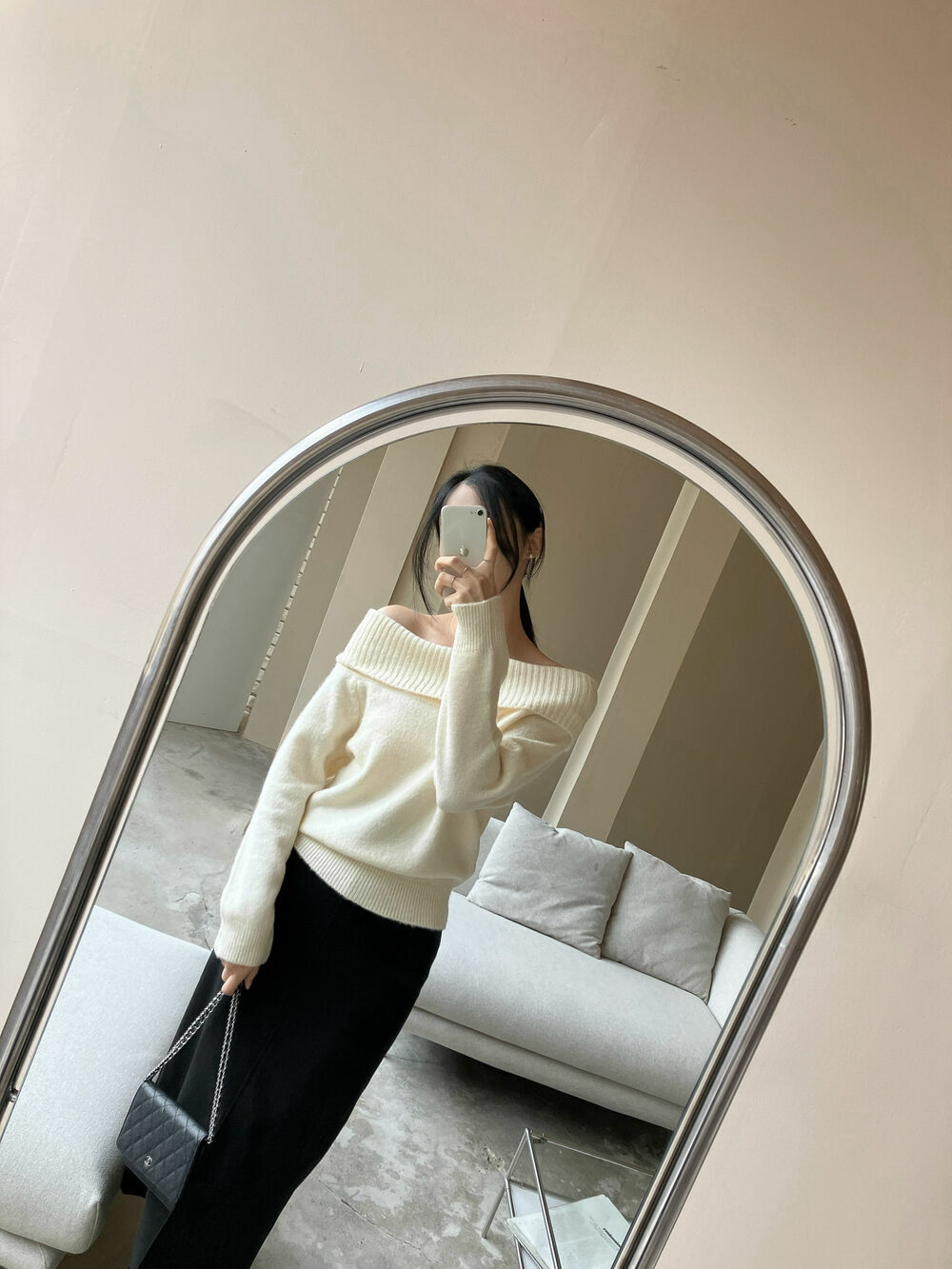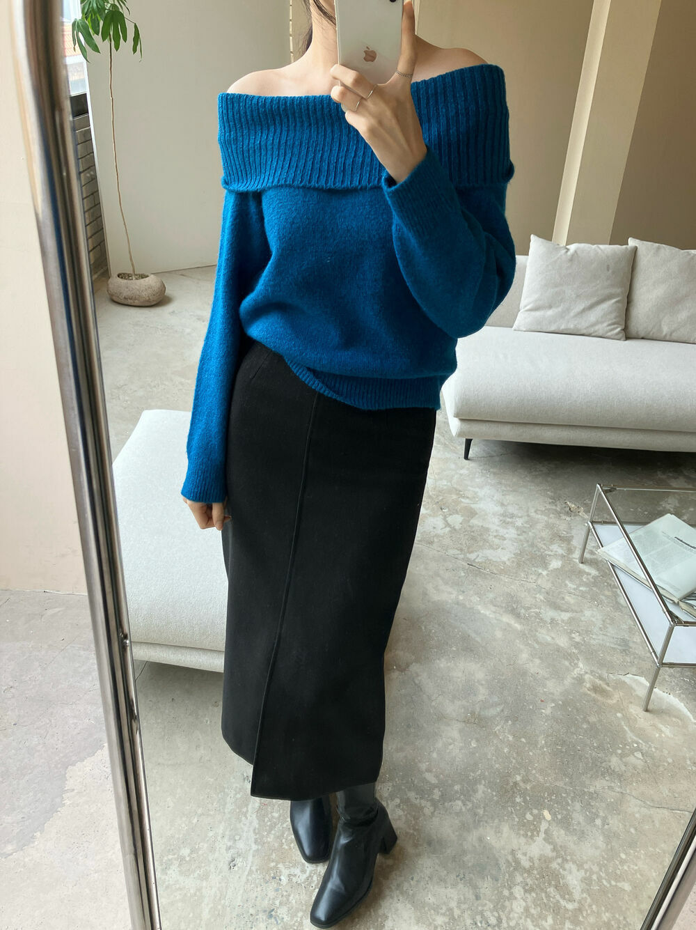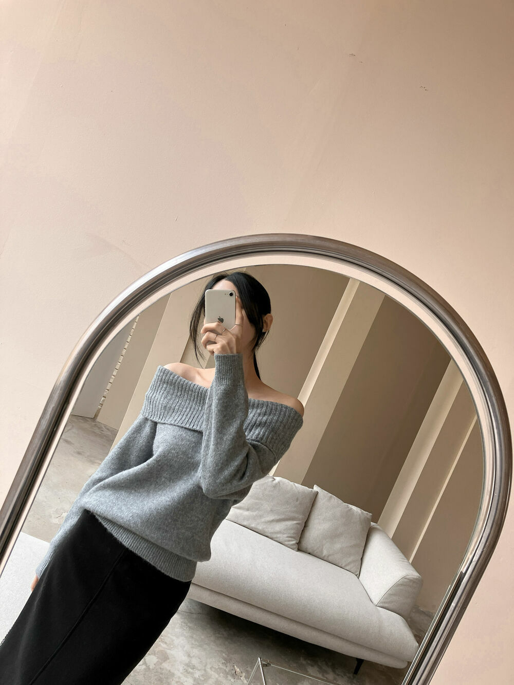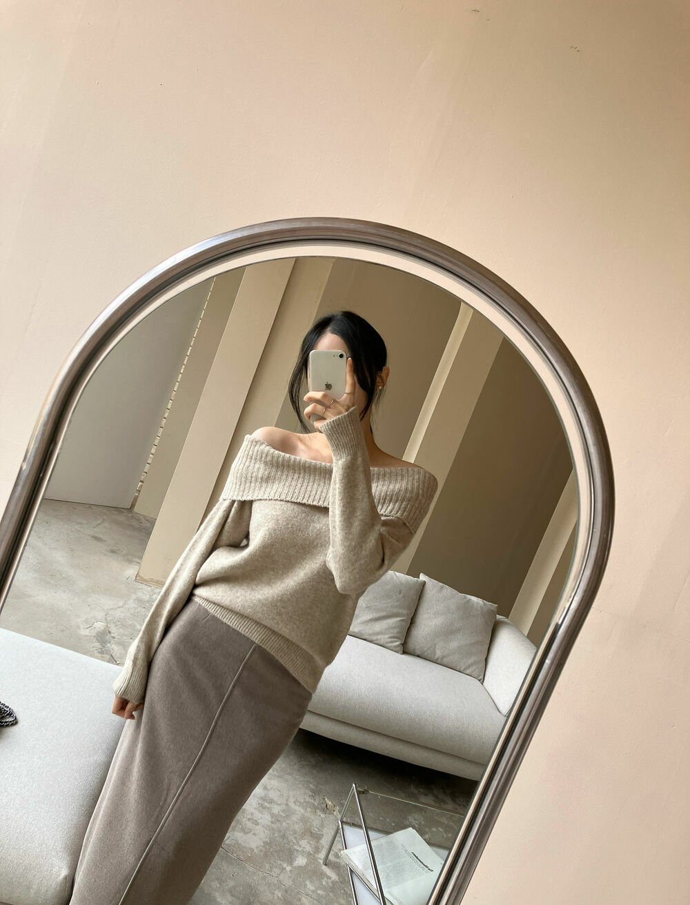 寬鬆版型針織一字肩上衣,