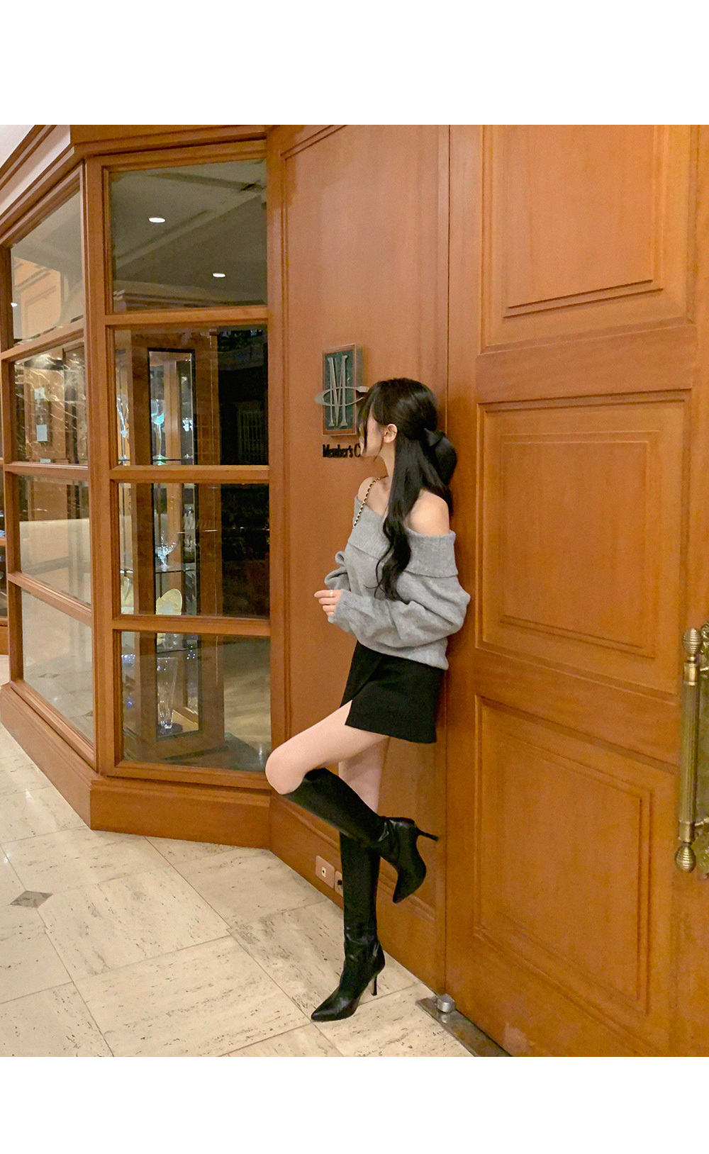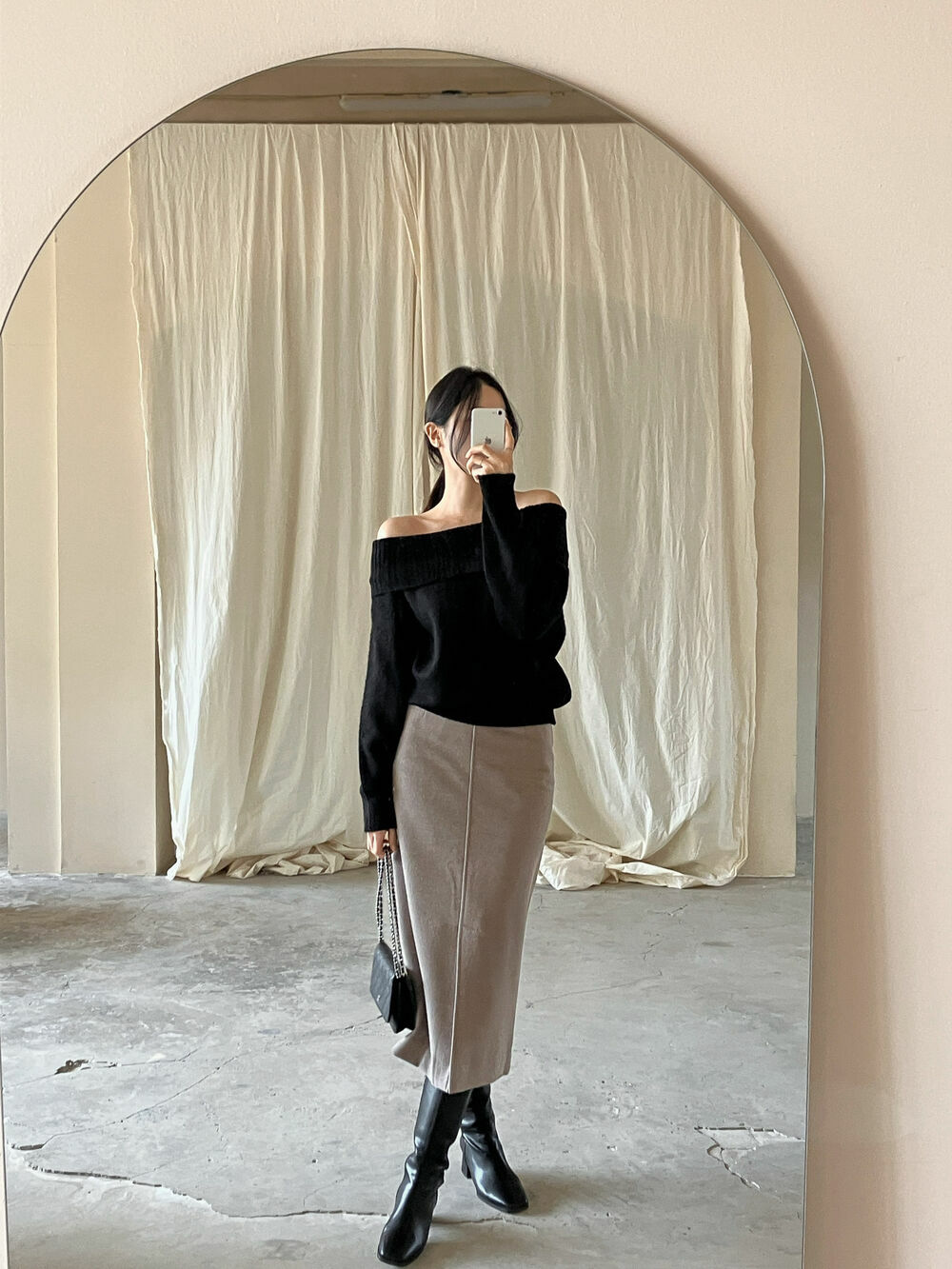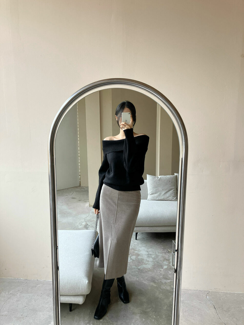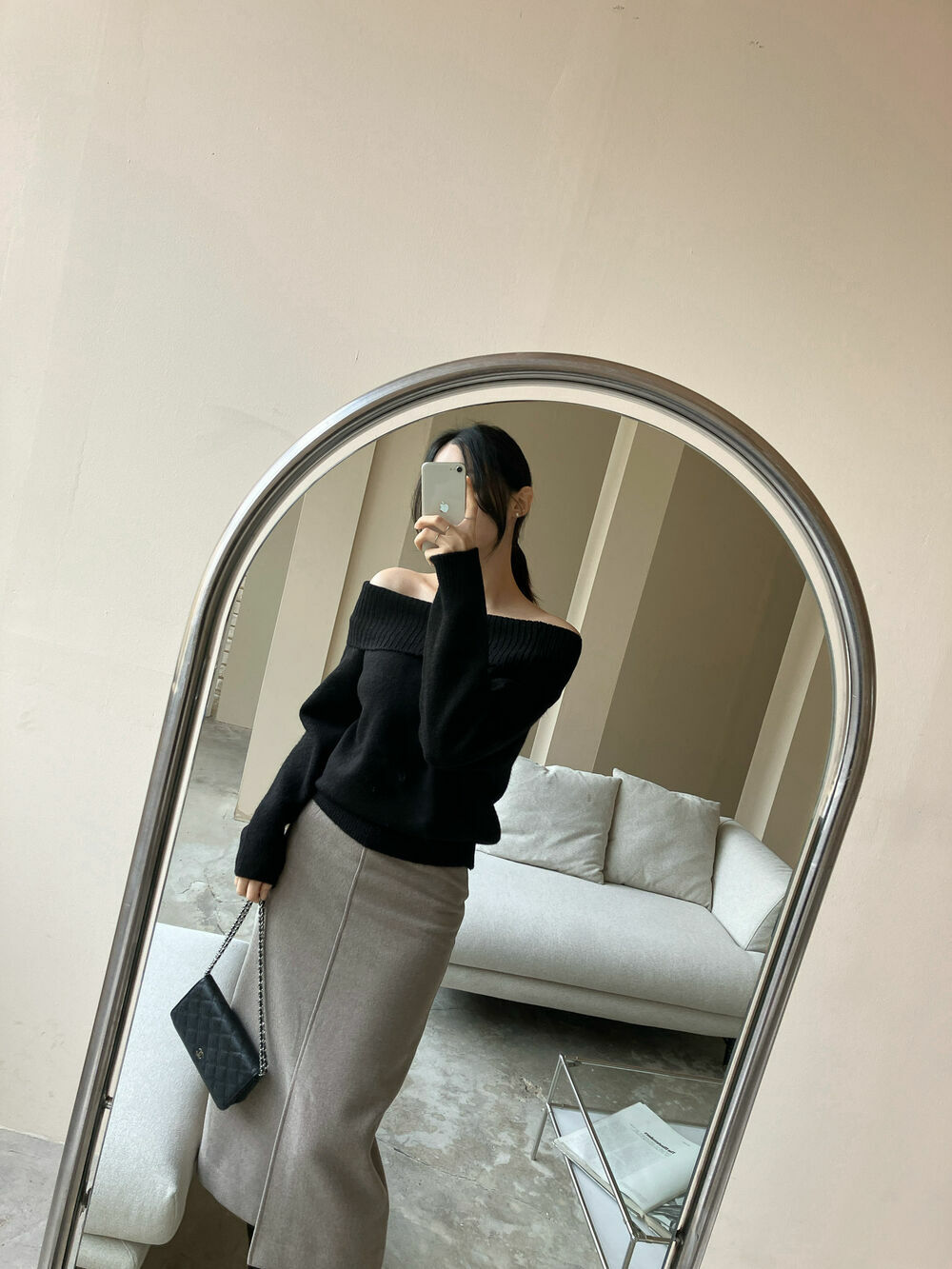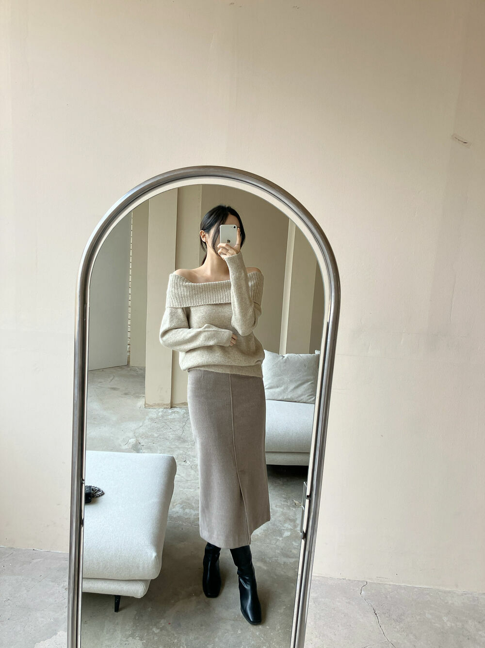 寬鬆版型針織一字肩上衣,