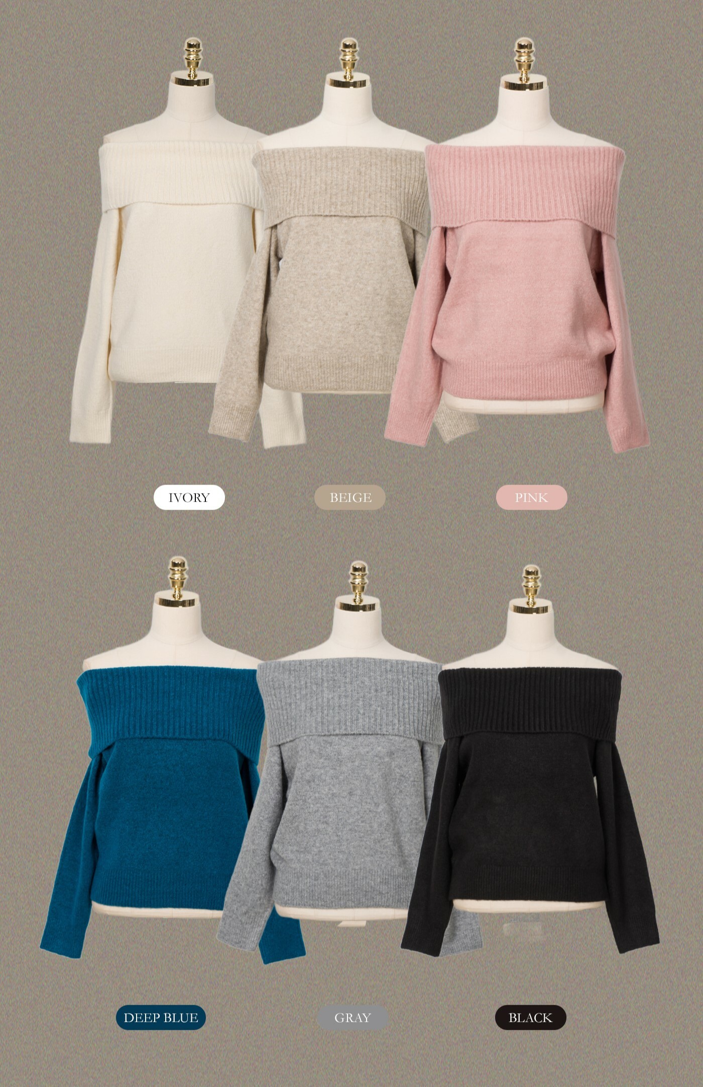 Grey / Oat Beige / Royal Blue / Black / Ivory / Pink (6色入~)