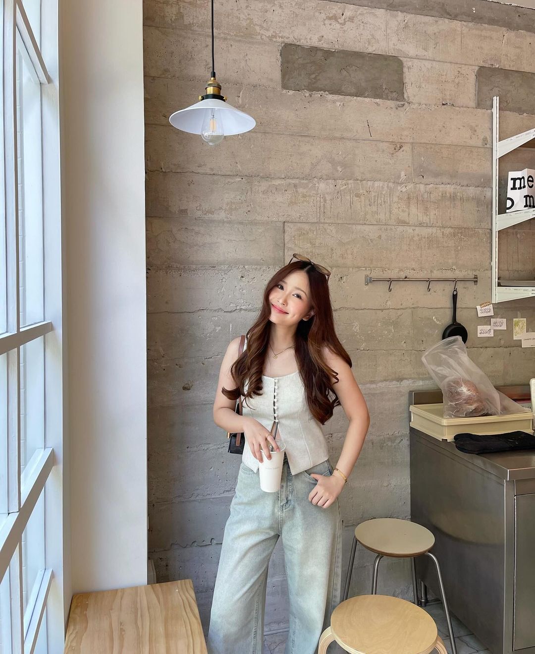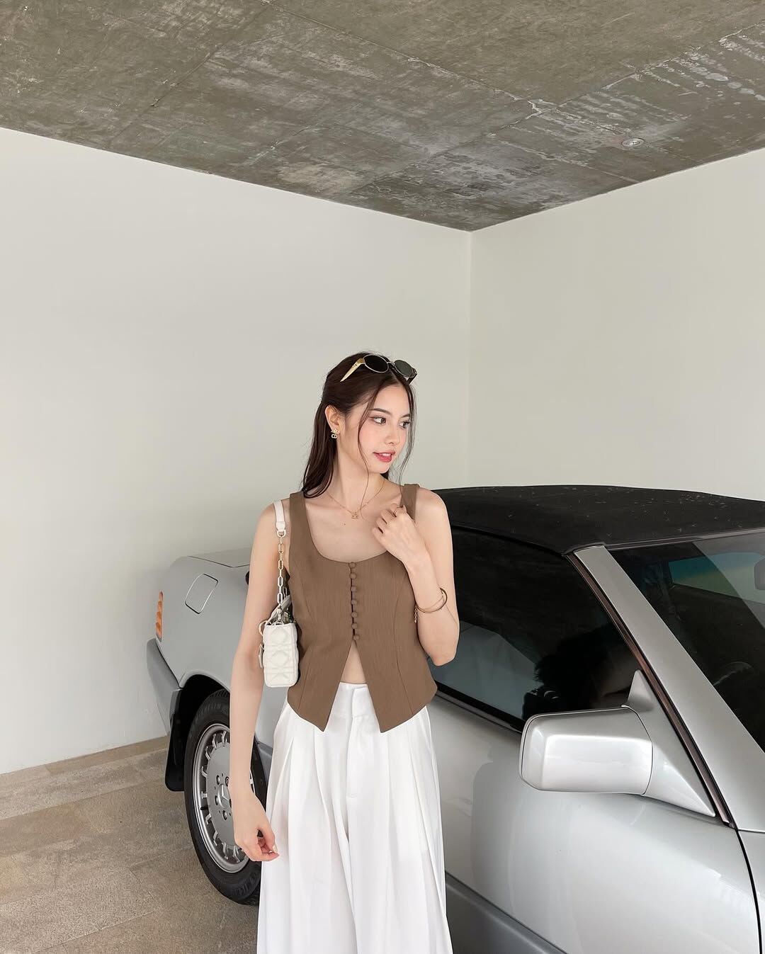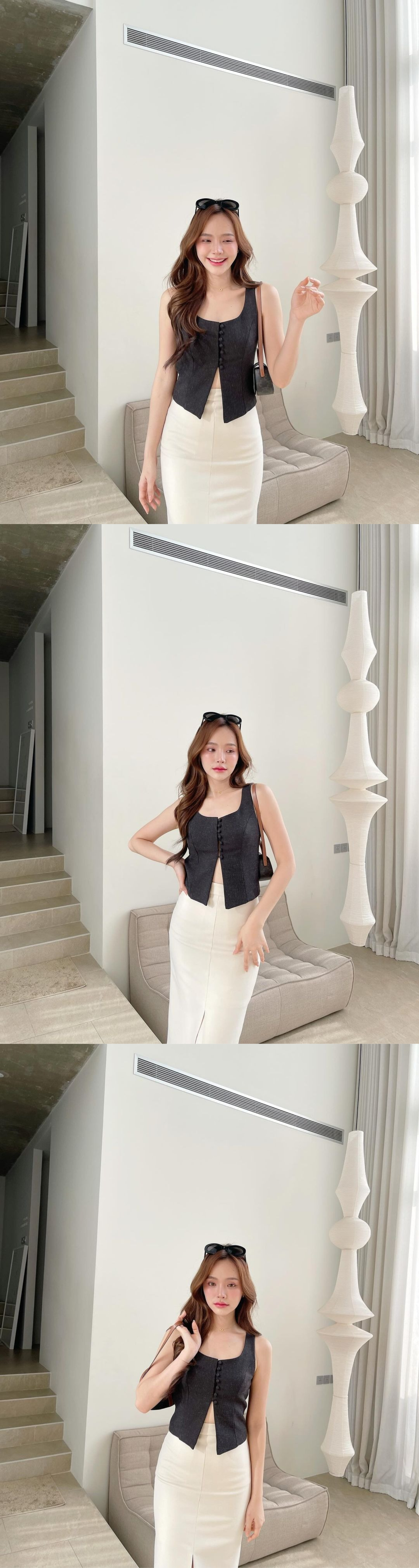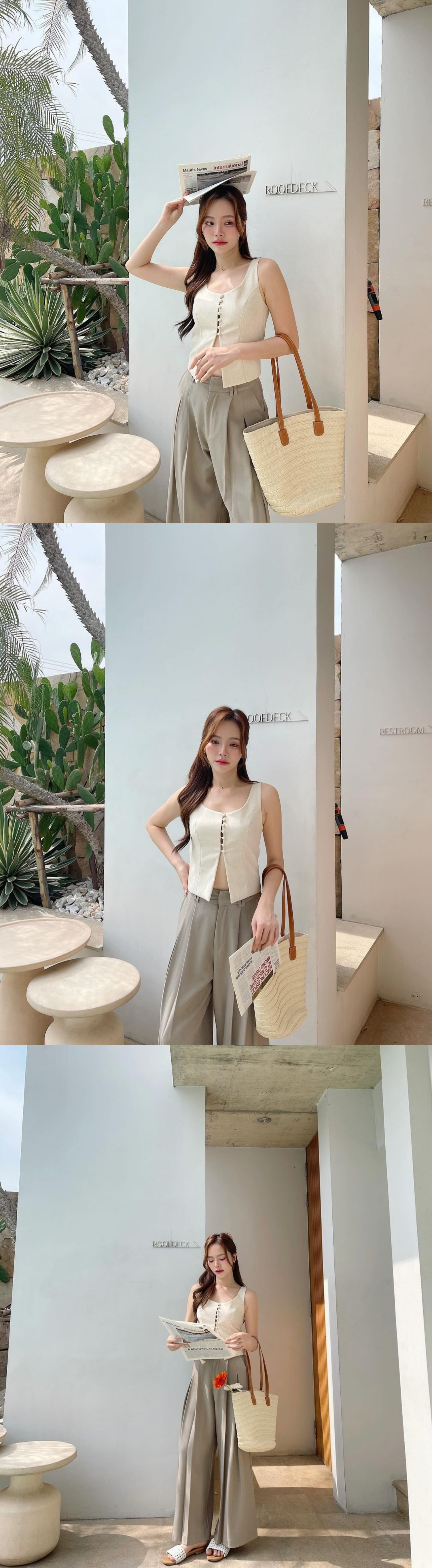 收腰的剪裁,, 一半的鈕扣小心機露出腰部,