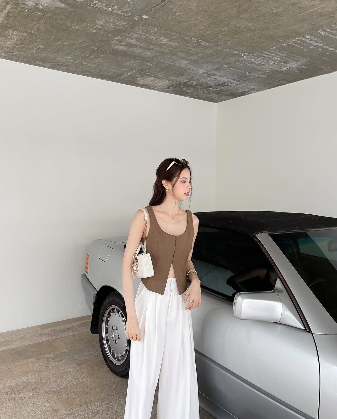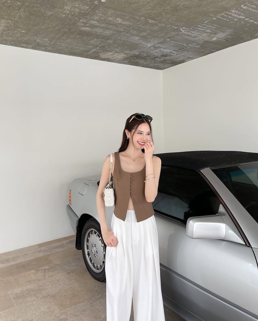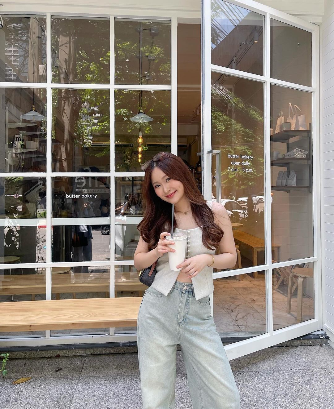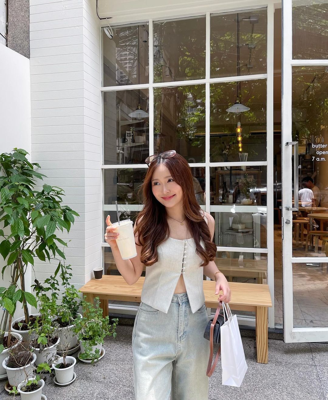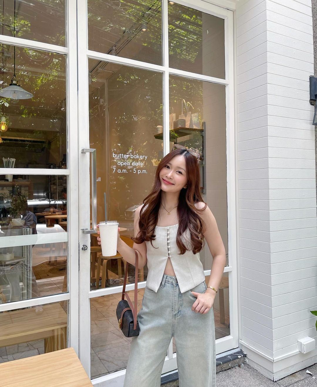 收腰的剪裁,, 一半的鈕扣小心機露出腰部,