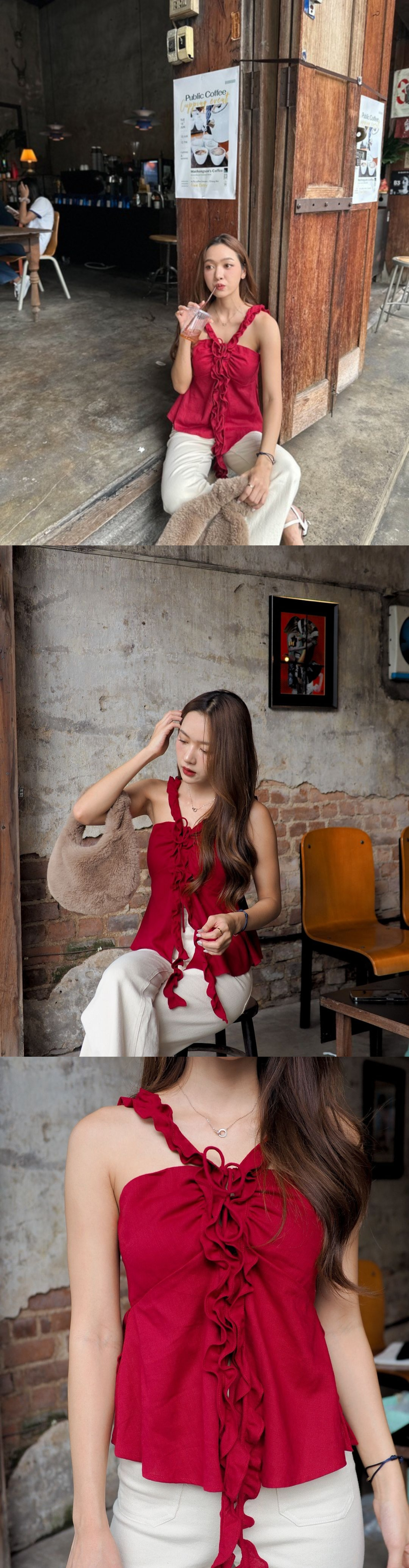棉麻質地的Halter neck blouse,